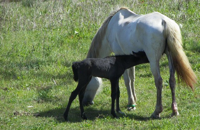 El potrillo fuerte y sano usualmente estará de pie y listo para mamar en una media hora o dos horas después del parto. Antes de permitir que mami por primera vez, la veladora la yegua con un desinfectante elige, enjuaga por completo con agua tibia y limpia.